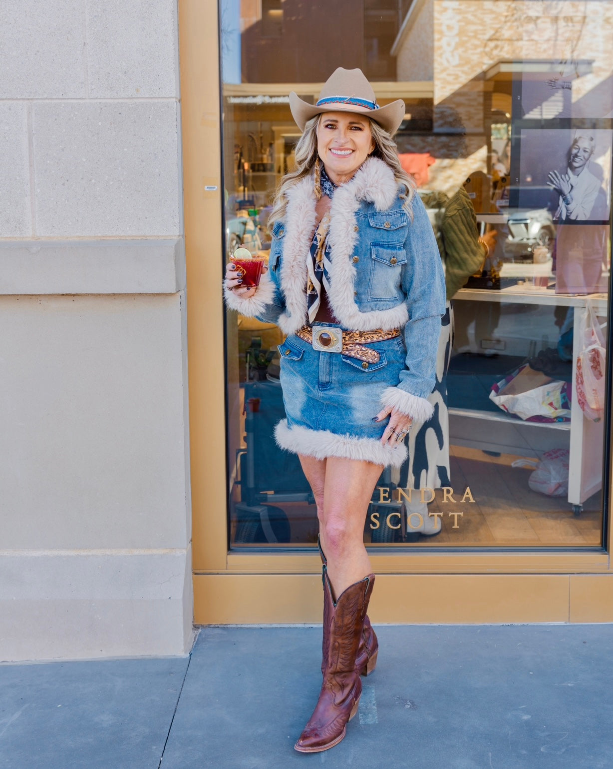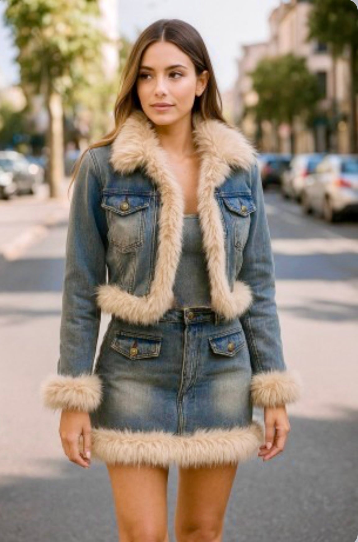 Unleash your inner adventurer with the Montana Denim Skirt Set! This daring ensemble features a high-waisted skirt and a slightly cropped jacket, both accented with chic faux fur trim & functional front pockets. Such a fun & unique set you could mix & match!